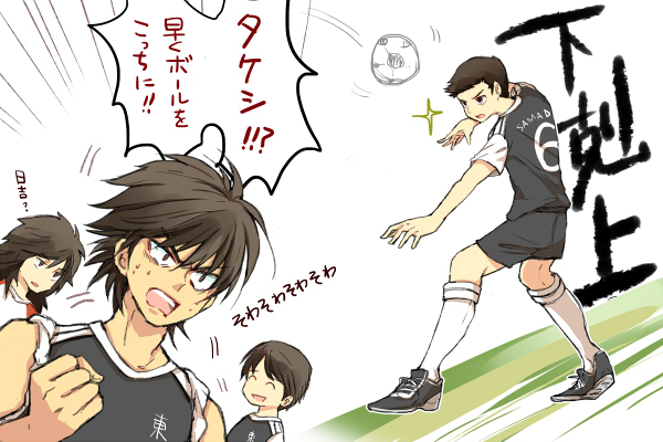 セオリー通り、日向にシュートを任せればいいのに、なぜか頑張ったタケシ。